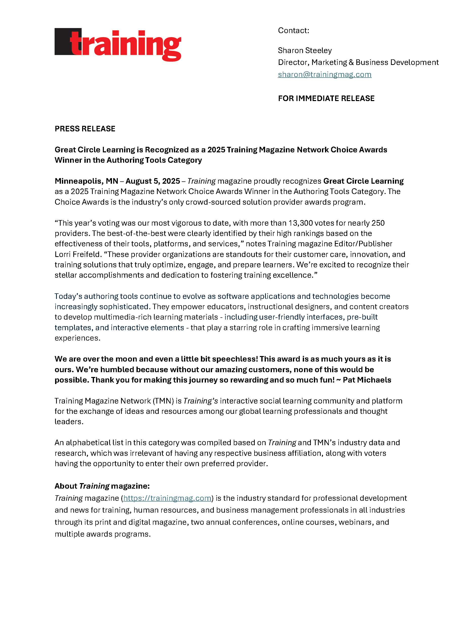 We are thrilled to announce that we have been honored with the Training Magazine Network Choice Award for Authoring Tools for the fourth year in a row! This prestigious recognition is a testament to our unwavering commitment to empowering organizations with the best tools for learning and development.