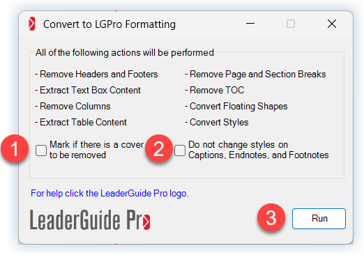Choose to allow or not allow LGPro to change the styles of Captions, Endnotes and Footnotes in the document being converted