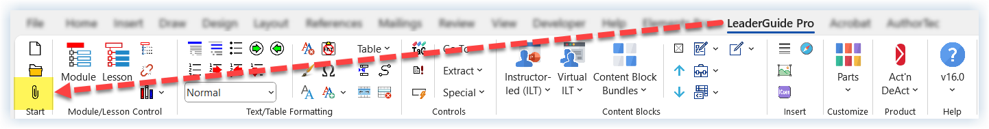 Click Attach in the Start group at the left end of the LGPro ribbon