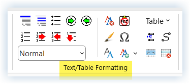 Use the Text/Table Formatting group button to add bullets, numbers, title text and regular LGP Text