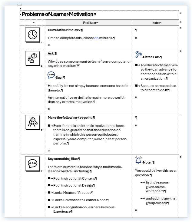 These things are taken care of once you integrate your “content part” into a full facilitator guide or participant guide using the Librarian function on the LGPro ribbon.