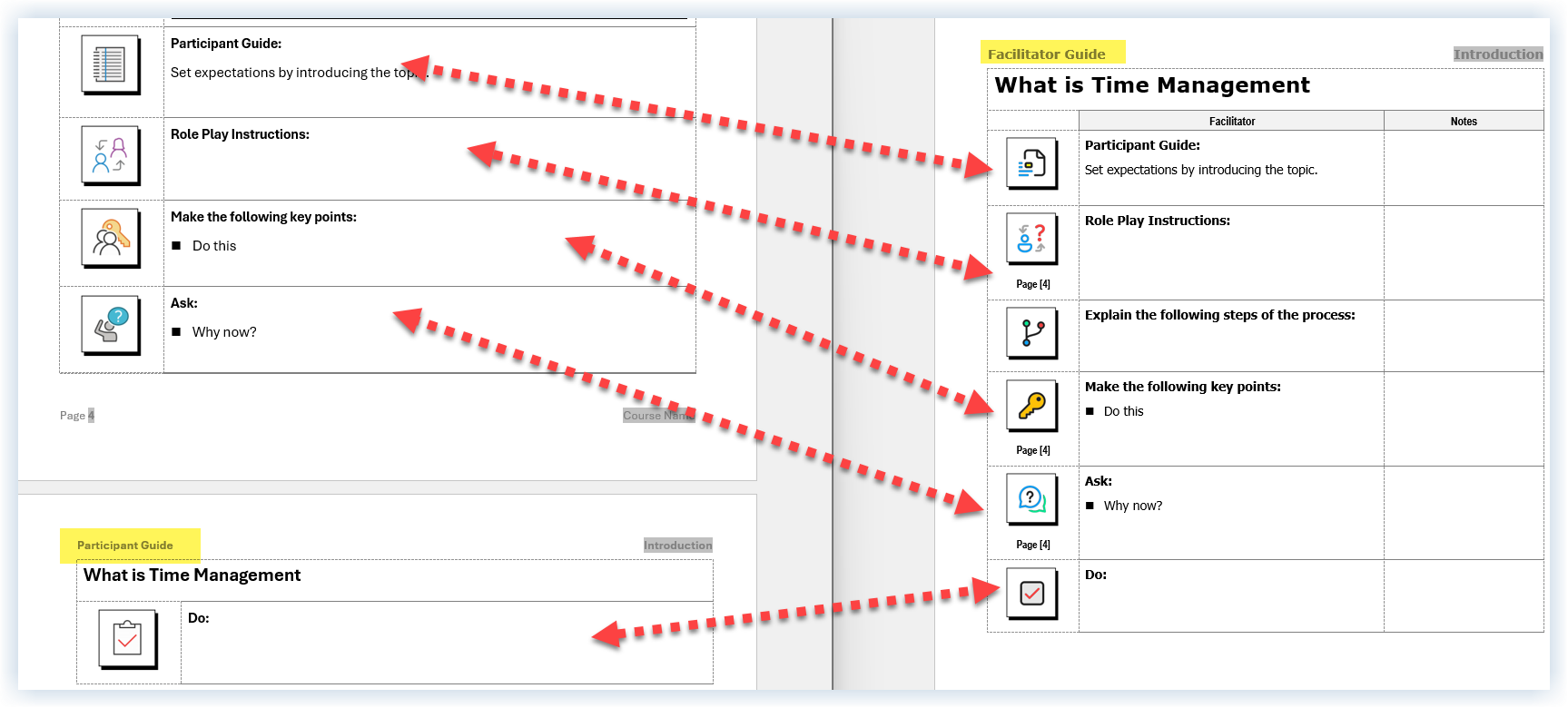 For example, it will tell you that you have 15 Key Points blocks in your Facilitator Guide and 17 in your Participant Guide
