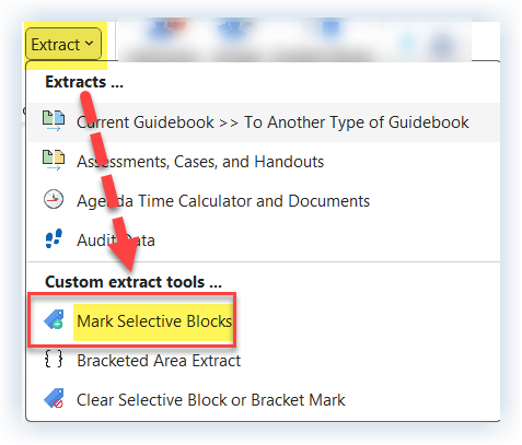 3. Select the option to Mark Selective Blocks from the dropdown menu.