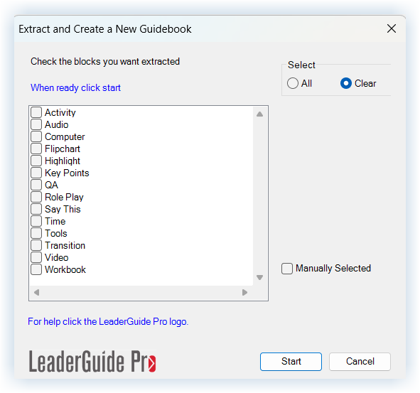 Be sure to place a check in the box next to Manually Selected in the Extract dialog box.