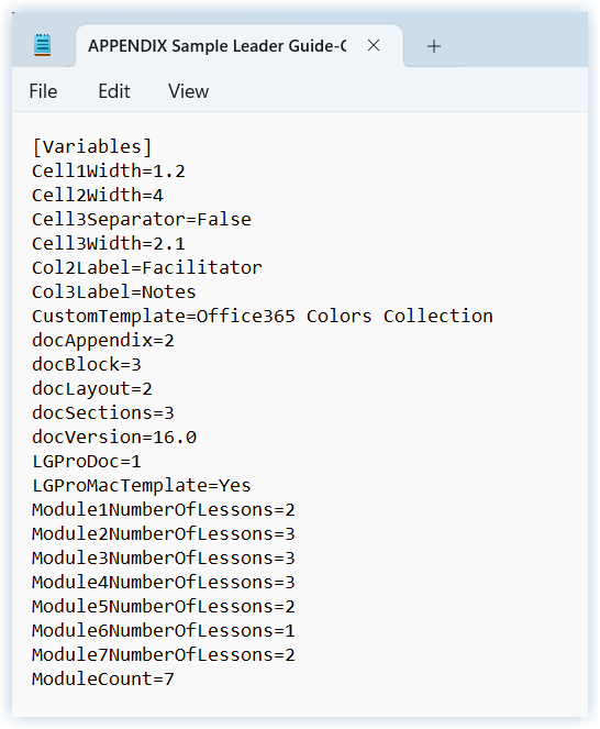 This automated content management function makes it easy to see the control information LeaderGuide Pro is storing about your guidebook.