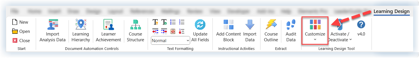 Click the Customize button on the Learning Design Tool ribbon.