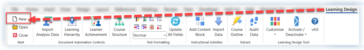 Click the New button on the Learning Design Tool ribbon to start your new Design Document