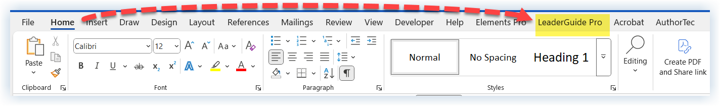 Open Word & click on the LeaderGuide Pro tab to access the LeaderGuide Pro Ribbon