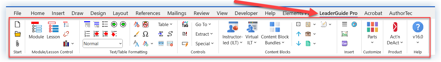 Keep the LeaderGuide Pro ribbon showing as you work in your LeaderGuide Pro document.